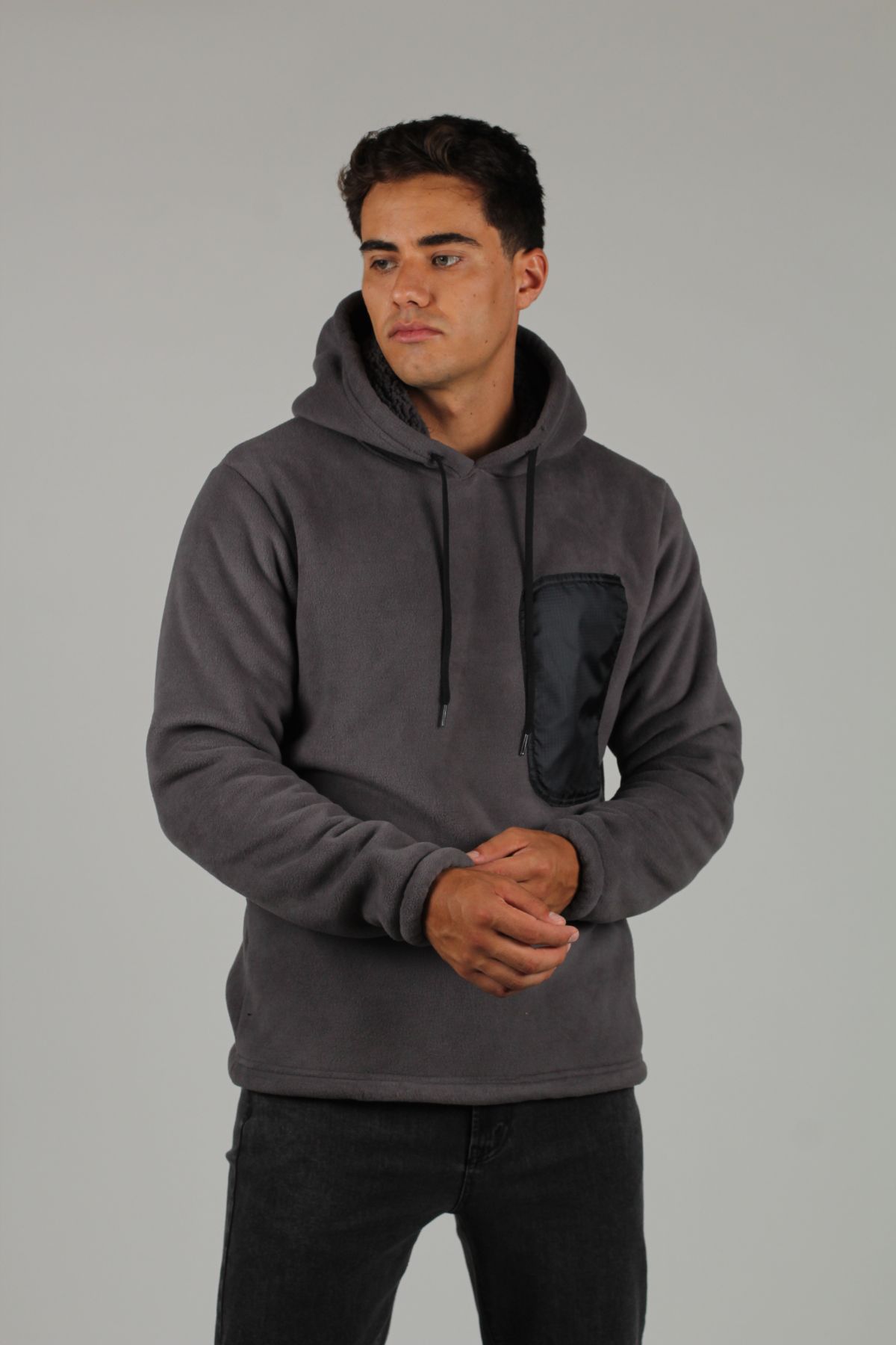 SUDADERA CERRADA CON GORRO PANA CABALLERO